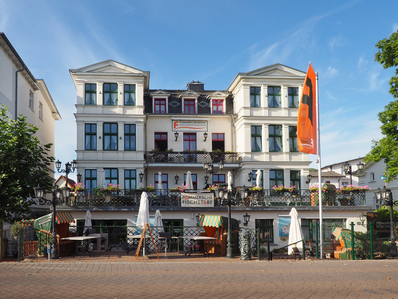Das Pommern Residenz Seniorenpflegeheim liegt unmittelbar an der Strandpromenade im Zentrum des Ostseeheilbades Ahlbeck. In einem verkehrsberuhigten Bereich sind Spaziergänge, aber auch Ruhepausen möglich, ohne große Entfernungen überwinden zu müssen. Unser Seniorenpflegeheim erstreckt sich über insgesamt 2 Häuser, welche sich durch ihre überschaubare Größe auszeichnen und somit einen sehr familiären Umgang ermöglichen. Sowohl die Sicherstellung einer individuellen und auf die Bedürfnisse jedes Bewohners abgestimmten Pflege und Betreuung als auch das Angebot vielfältiger Freizeitaktivitäten und die Ermöglichung eines gelungenen Lebensabends stehen in unserer Einrichtung stets im Mittelpunkt.